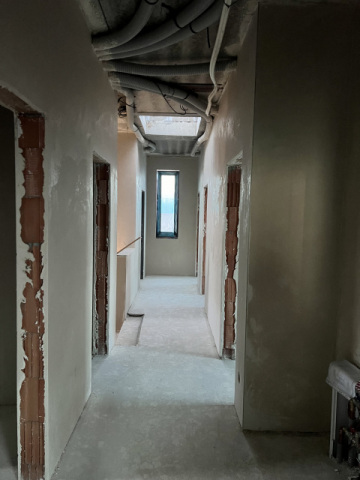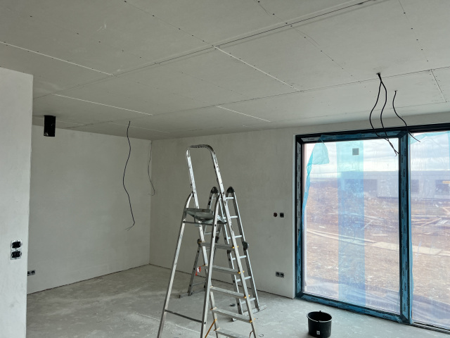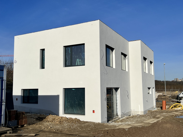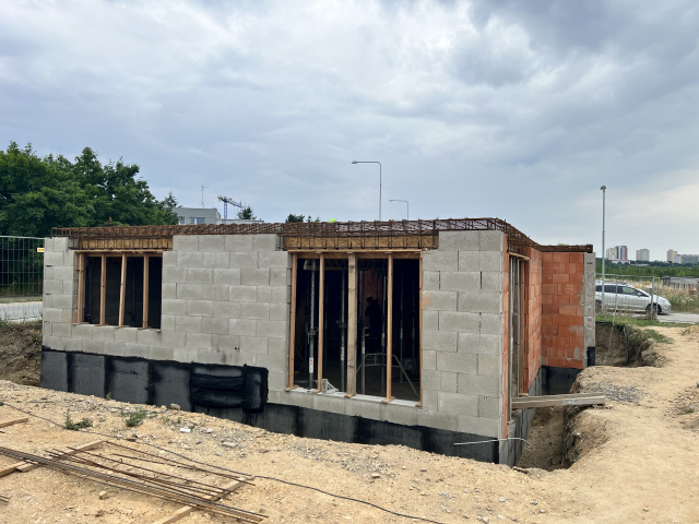 Pro privátního investora jsme provedli v roce 2023 a 2024, výstavbu rodinného domu, na parcele v Praze 4. Jedná se o stavbu částečně železobetonové konstrukce a částečně vyzdívanou keramickými broušenými cihlami. Stropní konstrukce, tvoří monolitická železobetonová konstrukce. Dům je zateplen kontaktním zateplovacím systémem s minerálním izolantem se zápustnou montáží kotev , které kryjí zátky MW. Střecha tepelně izolována polystyrenem, se spádovými klíny a provedena kotvená povlaková krytina. Oplechování klempířských prvků, v barvě hliníkových oken. Na parcele již byla příprava na napojení sítí, bylo provedeno připojení na tlakovou kanalizaci, instalována nádrž na dešťovou vodu s vsakovací retenci a přepadem do dešťové kanalizace. V interiéru je instalováno podlahové vytápění, rekuperace, klimatizační jednotky. O teplo se stará tepelné čerpadlo. Elekroinstalace je provedena s přípravou na připojení fotovoltaické elektrárny s panely na ploché střeše. Obklady jsou provedeny velkoformátovou dlažbou a obkladem. Omítky nakonec investor vybral vápenosádrové, tyto byly provedeny strojně. Dokončovací práce momentálně probíhají.